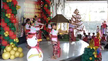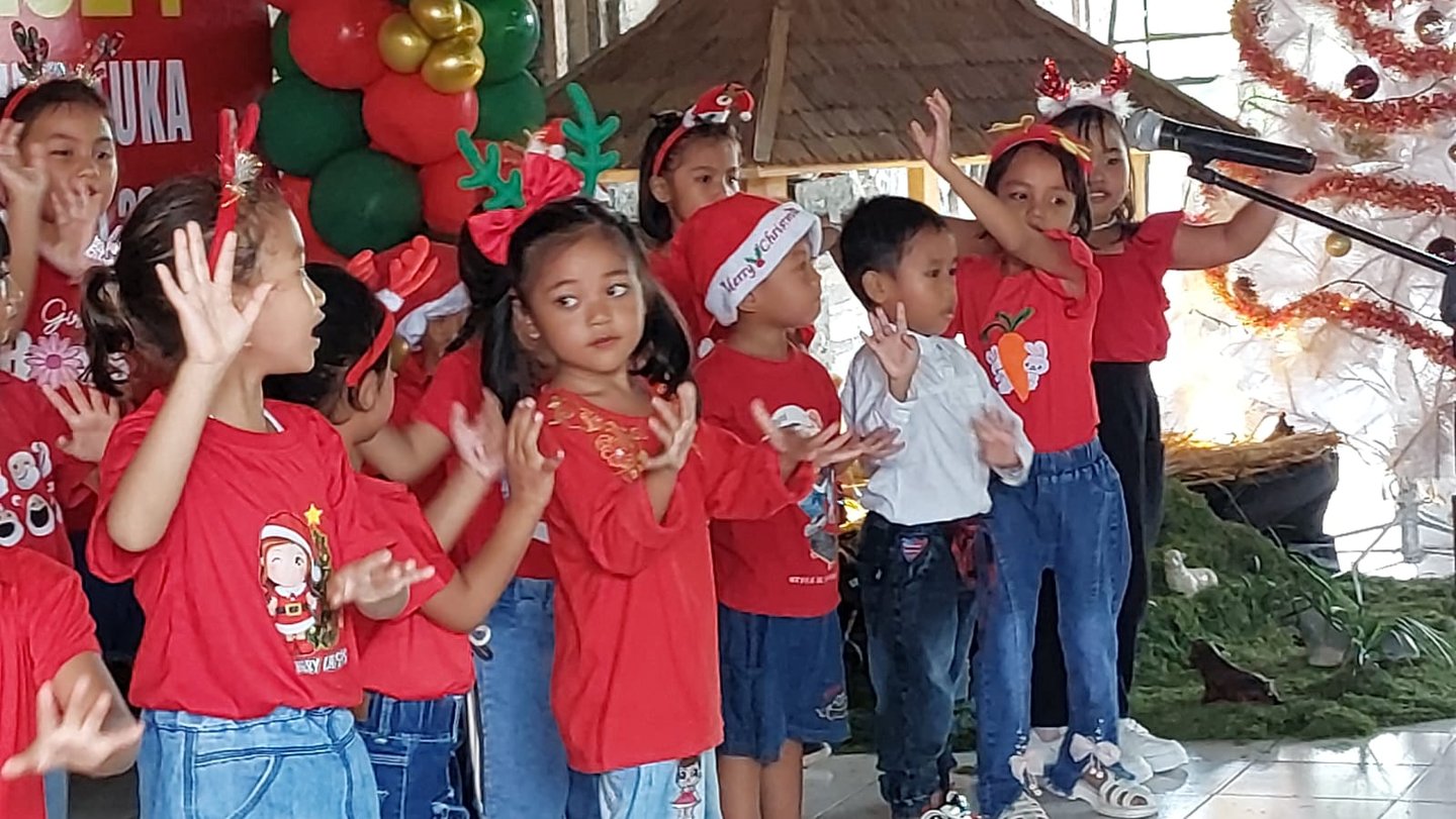 Tampak jelas kegembiraan dan keceriaan anak-anak dalam perayaan Natal dan Hari Anak Misioner Sedunia yang diadakan di gedung serba guna paroki (Minggu, 7/1/2024). Anak-anak didamping oleh para pembina menampilkan berbagai atraksi seni bertemakan Natal. Menari, menyanyi, berpuisi, memainkan boneka, dan bermain drama.