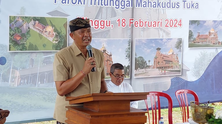 Pada tanggal 16 Februari 2024, Umat Tuka yang diwakili oleh Panitia Pembangunan dan juga didampingi oleh Pastor Paroki Tuka berkesempatan bertemu dengan Perbekel Desa Dalung, Bapak I Gede Putu Arif Wiratya, S.Sos. Beliau sangat senang mendapat kunjungan ini sehingga kerinduan beliau terobati untuk bisa bertemu langsung dengan tokoh umat di Tuka. Beliau bahkan berjanji untuk bisa datang ke Tuka yang pada 18 Februari 2024 melaksanakan Upacara Peletakan Batu Pertama untuk relokasi bangunan Gereja Tuka. Janji beliau dipenuhi dan berkenan memberikan sumbangan pribadi untuk rencana pembangunan gereja. Bahkan berjanji juga untuk mengawal proses pembangunan Gereja melalui dana desa.