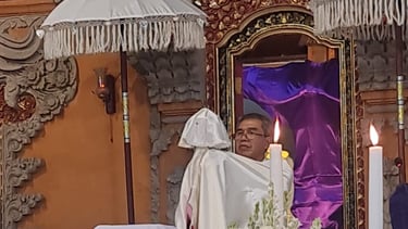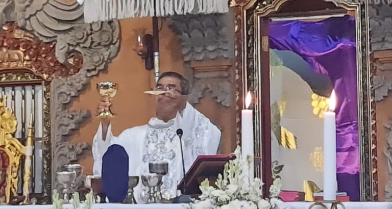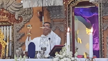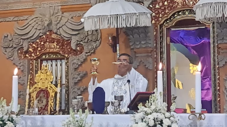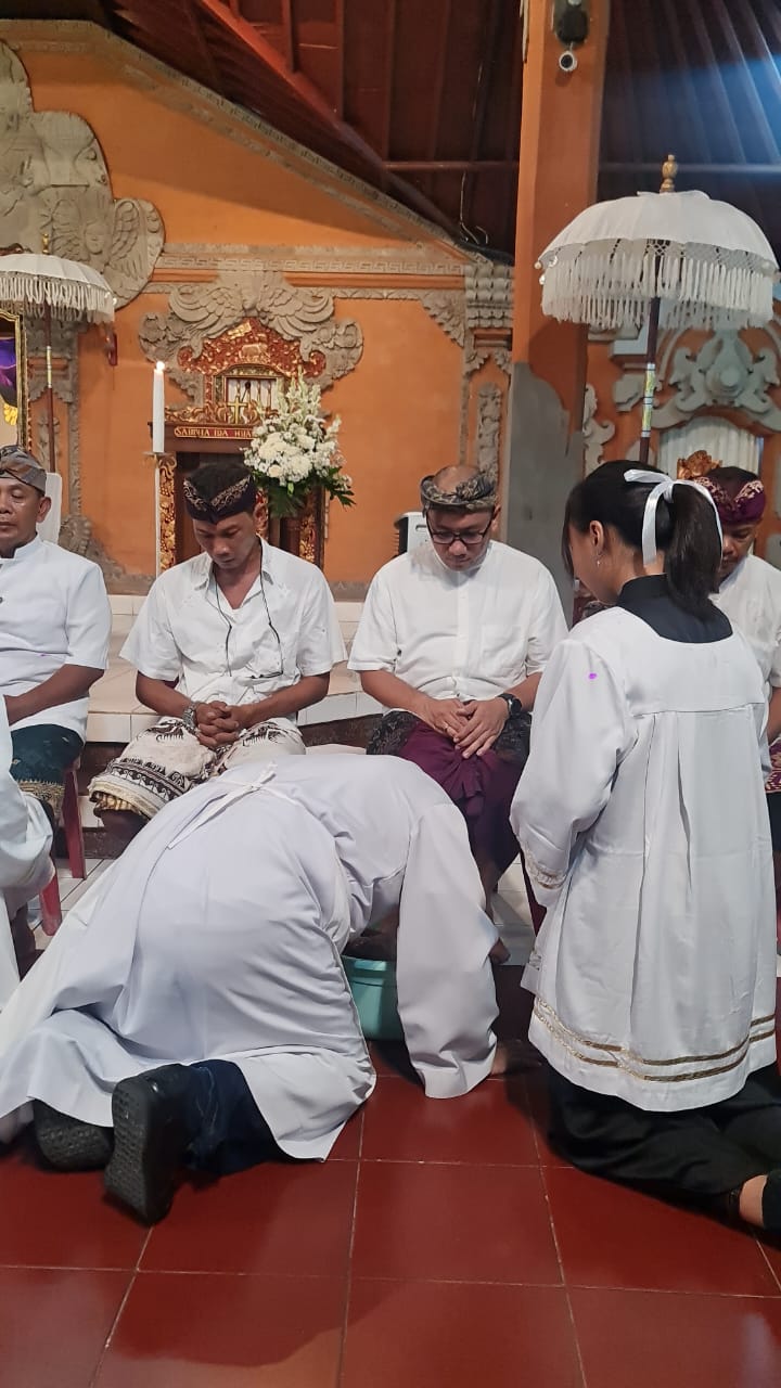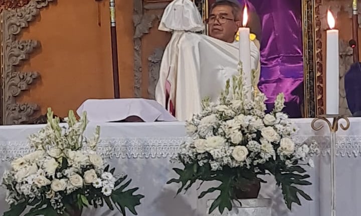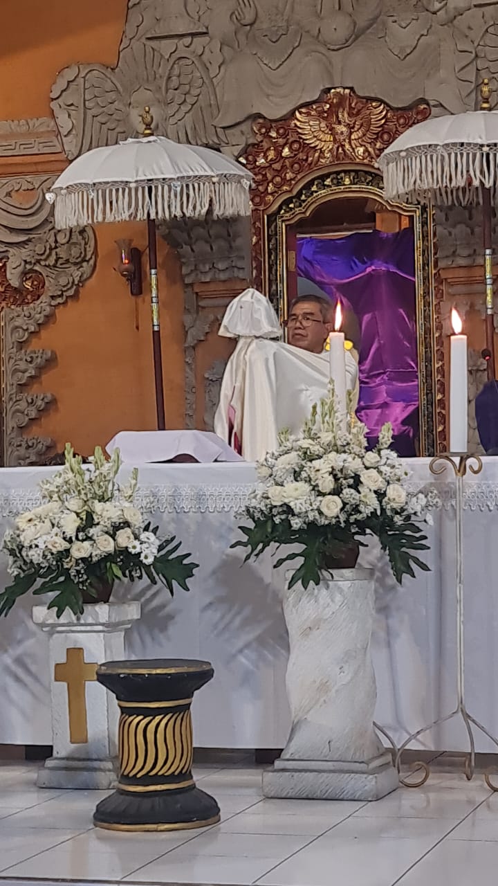 ‘Mencintai Ekaristi dan Merajut Kasih Persaudaraan dalam Hidup’, demikian tema homili Romo Gabriel Madja yang memimpin Misa I Kamis Putih di Gereja Tritunggal Mahakudus Tuka. Beliau menegaskan kembali bahwa sebagai murid Tuhan kita harus tetap teguh dalam iman.
