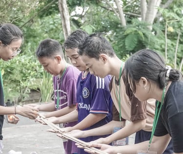 Terdapat 12 kelompok dengan 7 pos dalam outbond. Pos pertama Pipa Bocor, yang kedua Estafet Air, pos ketiga Ping Pong Berantai, pos keempat Estafet Gelas, dan pos kelima Seimbang Karet, pos keenam Tower Air, dan pos terakhir Kereta Badan. Di pos terakhir diberi latihan untuk meningkatkan kekompakan. Di setiap pos mereka akan bersaing dengan kelompok lain untuk mendapatkan pita hijau sebagai penentu bahwa kelompok mereka yang akan menjadi pemenang.