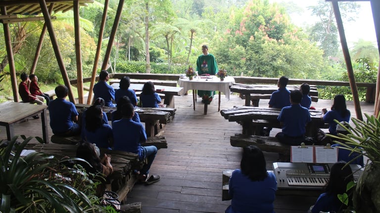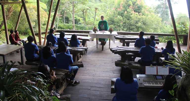 Hari beranjak siang ketika kegiatan diskusi dengan Romo Nyoman berakhir. Rangkaian kegiatan di Bedugul ini ditutup dengan makan siang di Kebun Anggur yang dikelola oleh SVD. (dr)