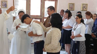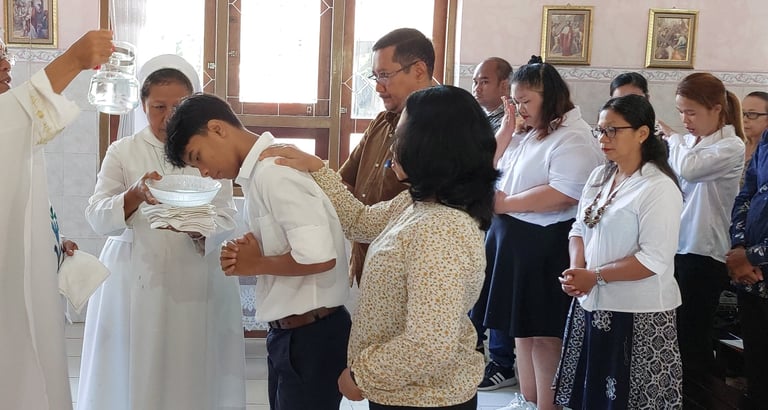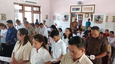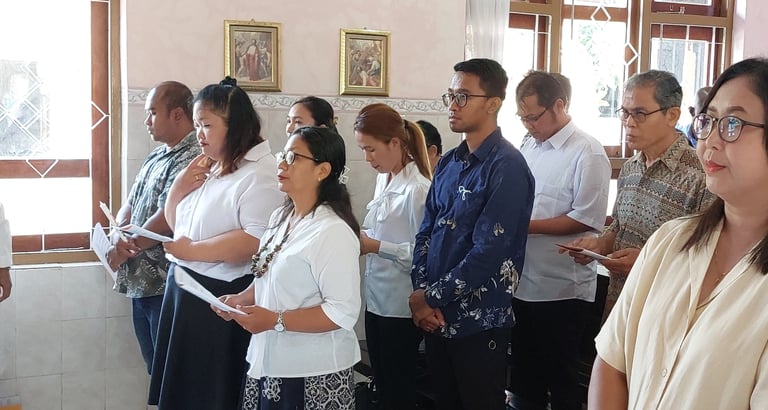 Paskah 2024 ini Gereja Tritunggal Mahakudus Tuka warga Gereja bertambah. Penandaan resmi sebagai anggota Gereja dengan penerimaan Sakramen Baptis telah dilaksanakan Sabtu (30/3/2024) di Kapela Susteran Biara OSF Tuka. Romo Paskalis Nyoman Widistra, SVD telah membaptis 6 orang calon baptisan baru dari 8 orang yang terdaftar. Dua orang lagi akan menyusul menjelang mereka menerima Sakramen Pernikahan.